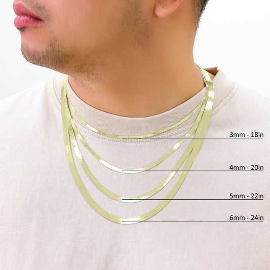 Solid 10K Yellow Gold 3mm-9mm Flat Herringbone Chain Necklace Women Men 16"- 24"