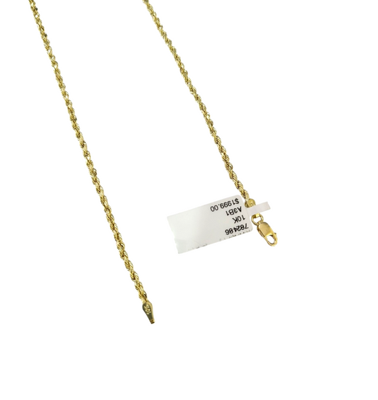 10K Yellow Gold Rope Chain Necklace 2mm 22 Inch REAL 10kt Diamond Cuts Womens