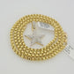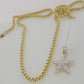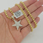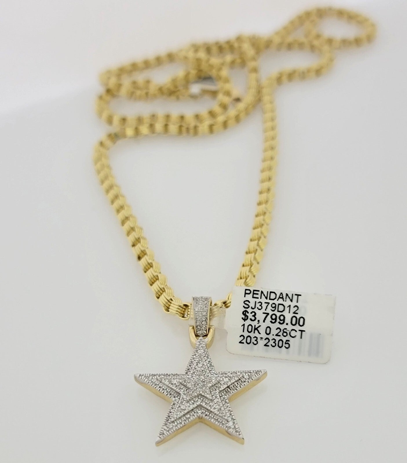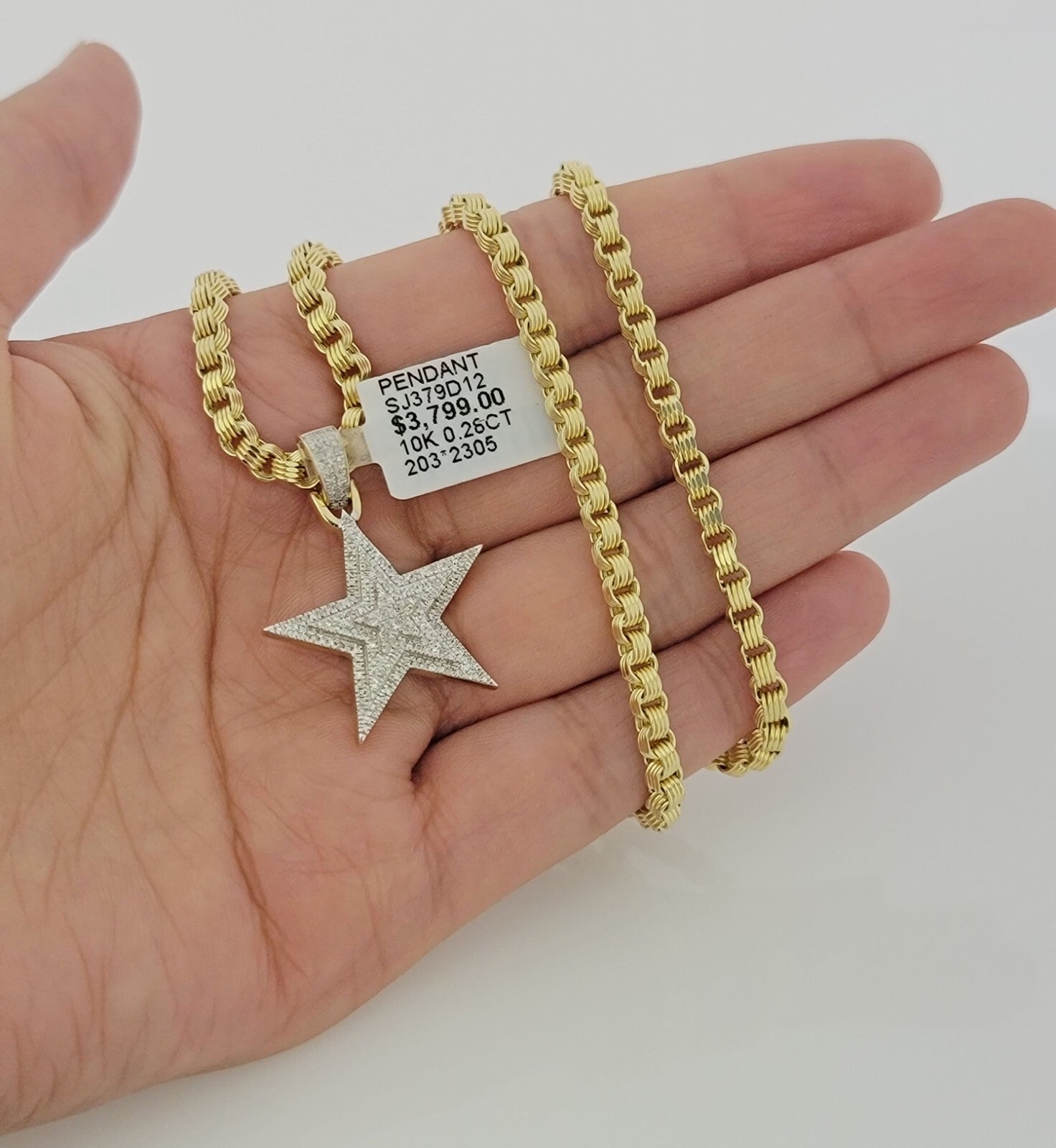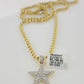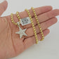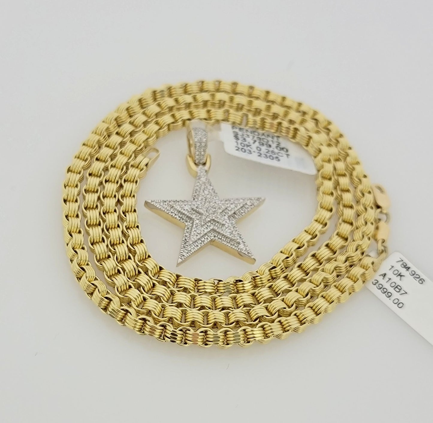 Real 10K Yellow Gold byzantine Chain With Star Charm Pendant SET