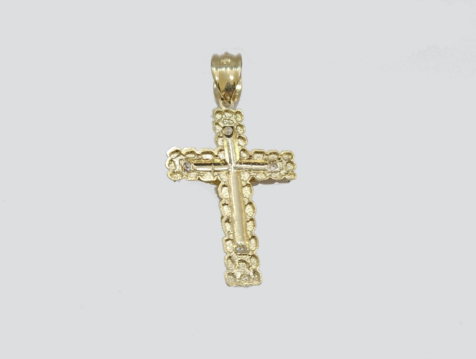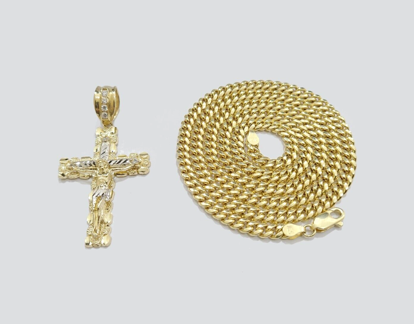 10k Yellow Gold Miami Cuban Chain 5mm 18" inch Necklace Jesus Cross Charm Real