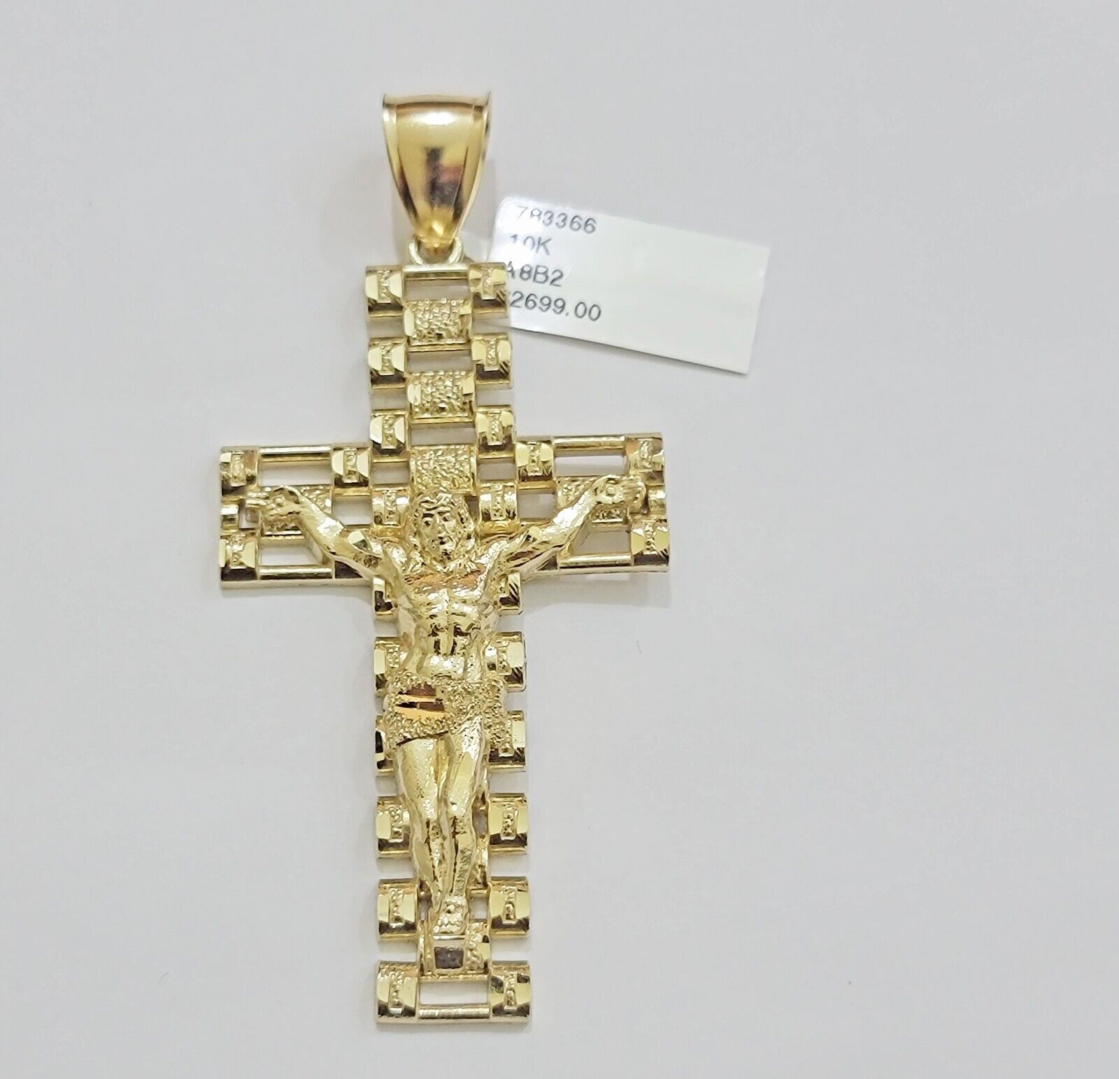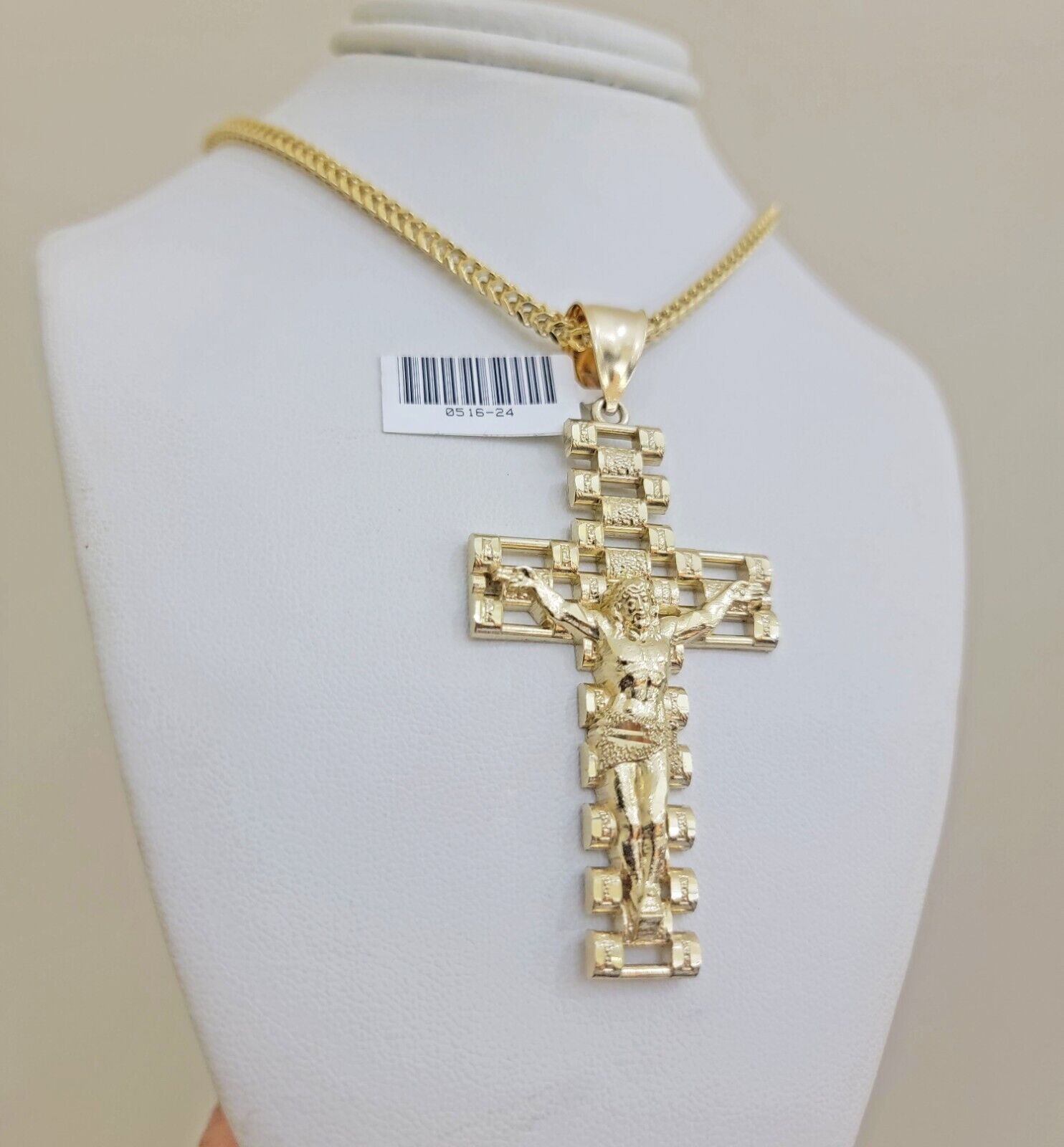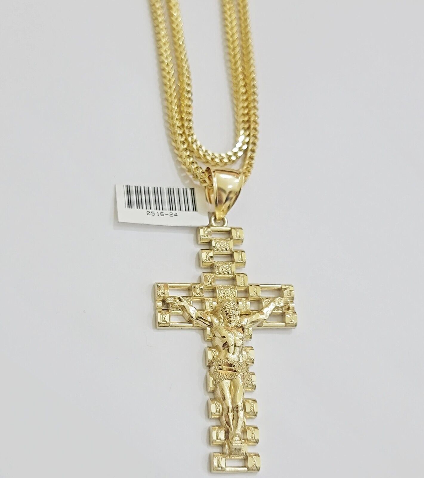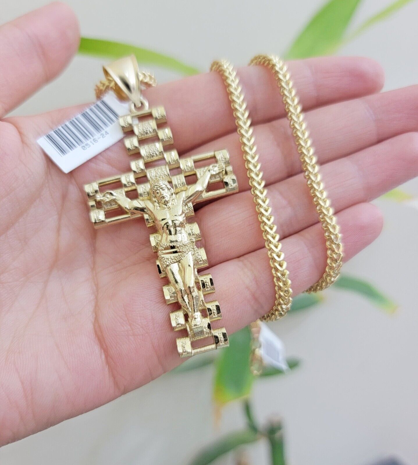 REAL 10k Gold Pendant & Franco Chain Necklace 20" - 26 Inch cross Charm