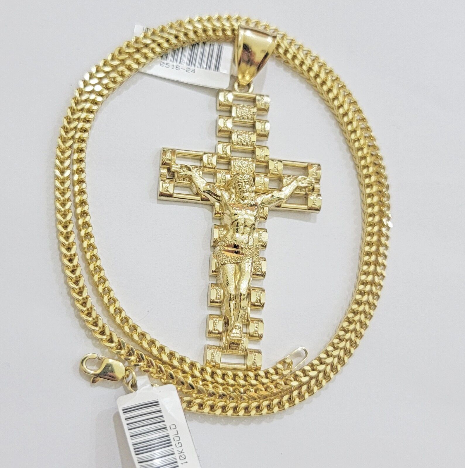 REAL 10k Gold Pendant & Franco Chain Necklace 24 Inch cross Charm