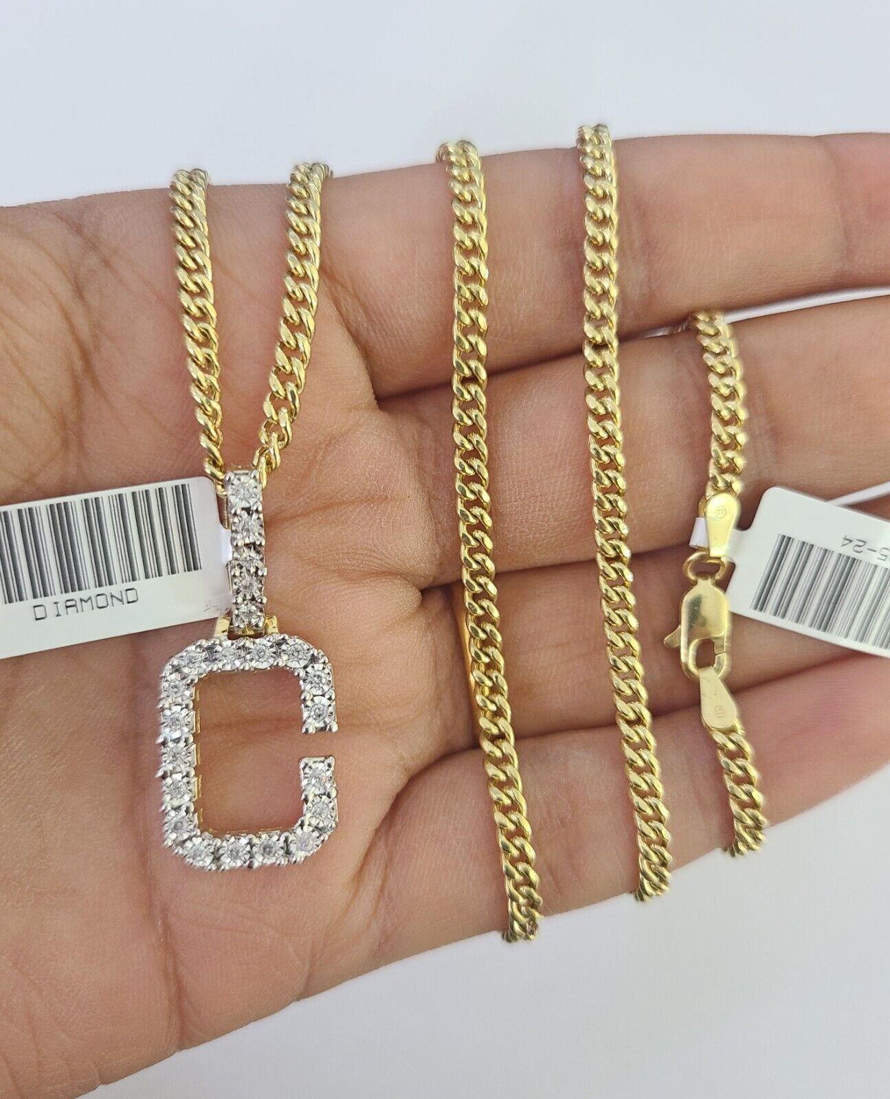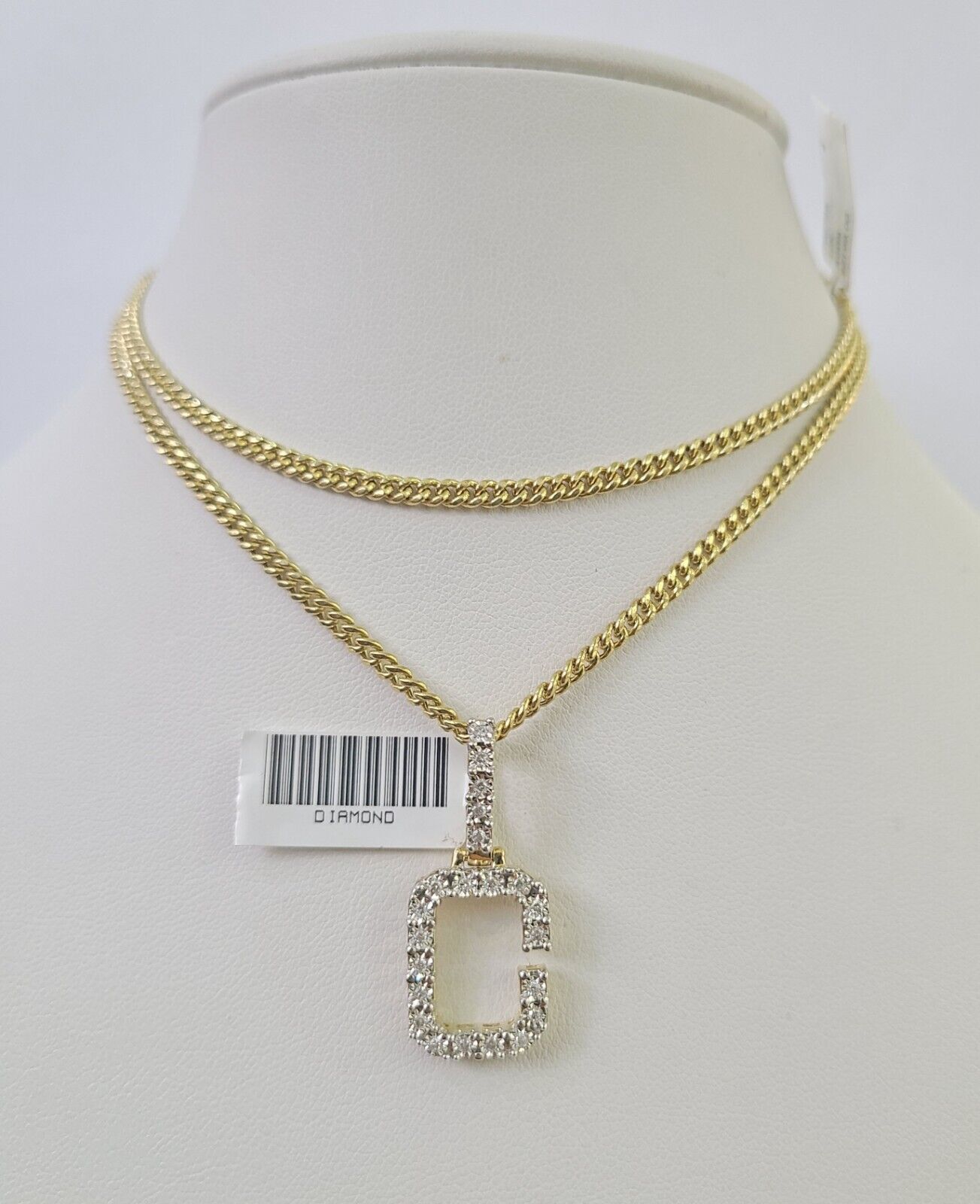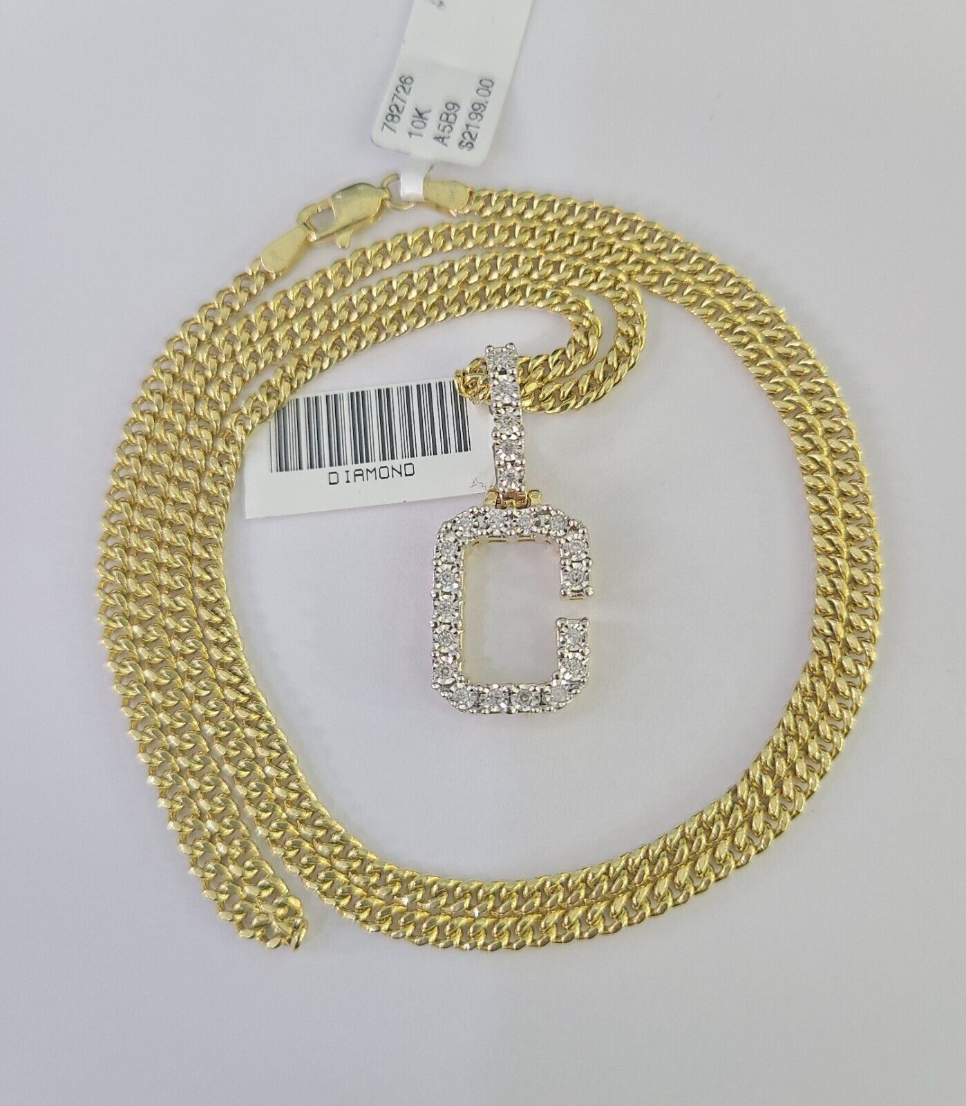 Real 10k Gold Chain C Alphabet Charm Pendant SET 3mm Miami Cuban Link Necklace