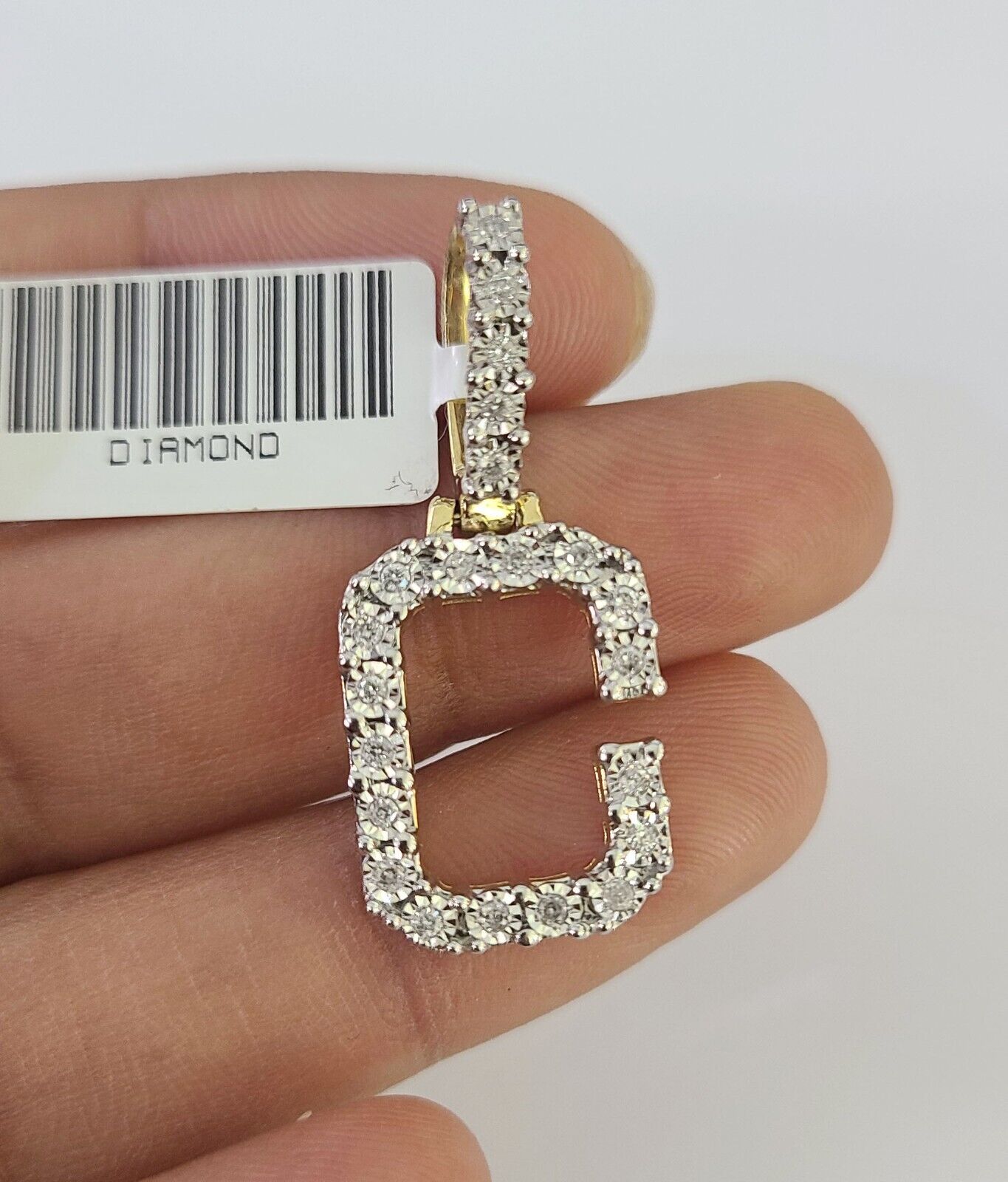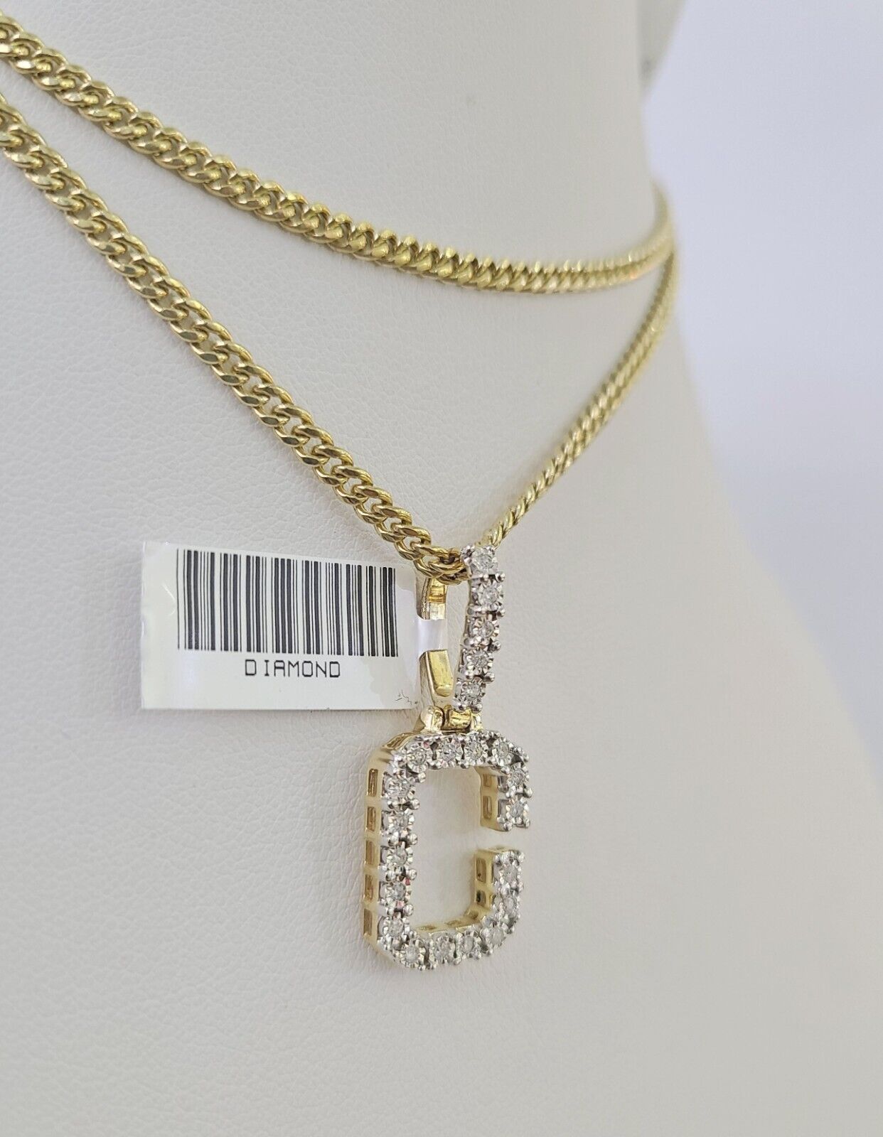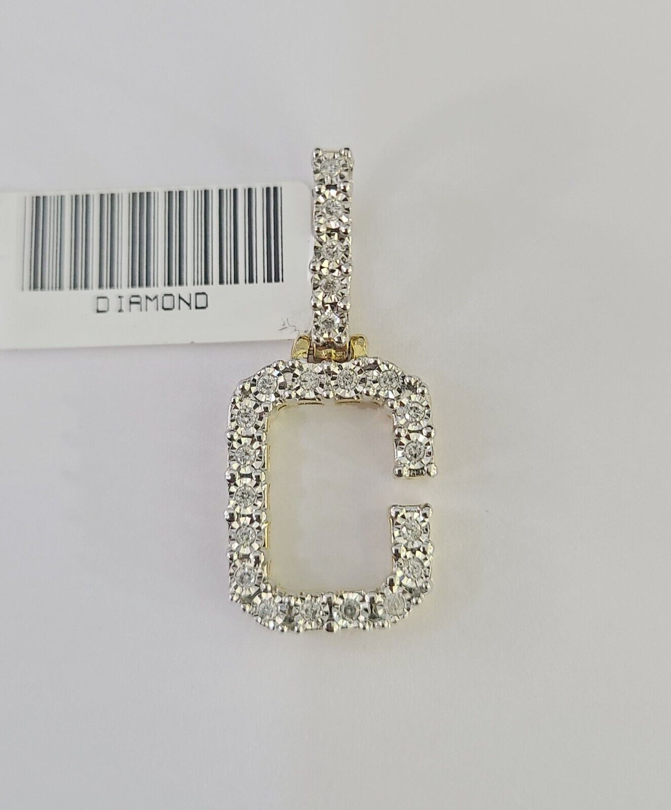 Real 10k Gold Chain C Alphabet Charm Pendant SET 3mm Miami Cuban Link Necklace