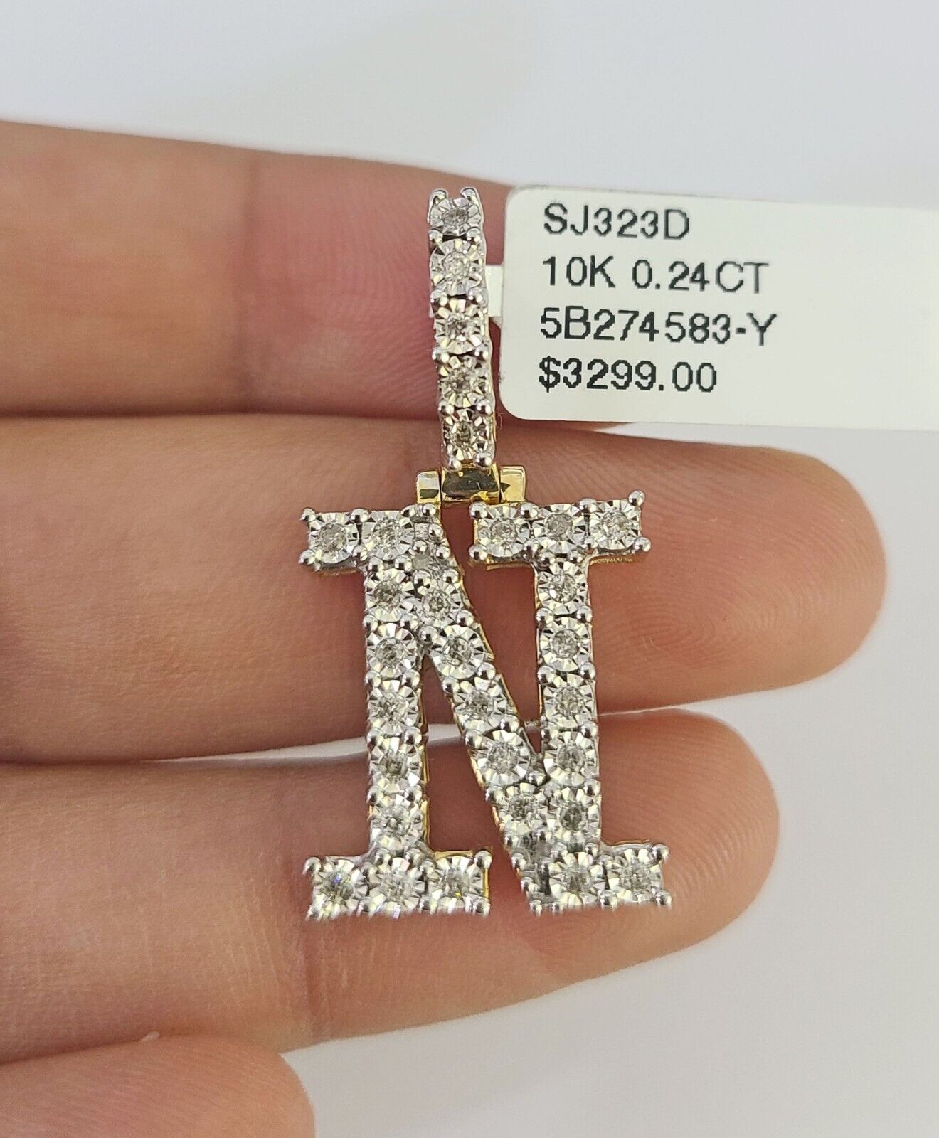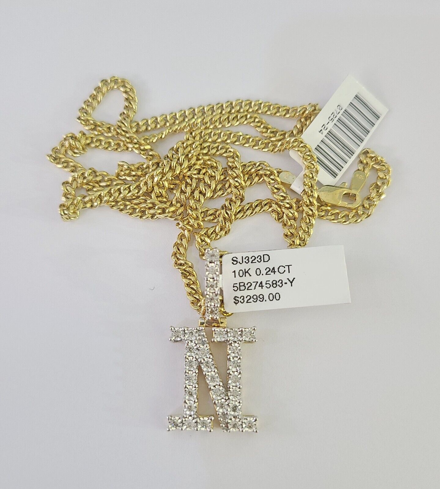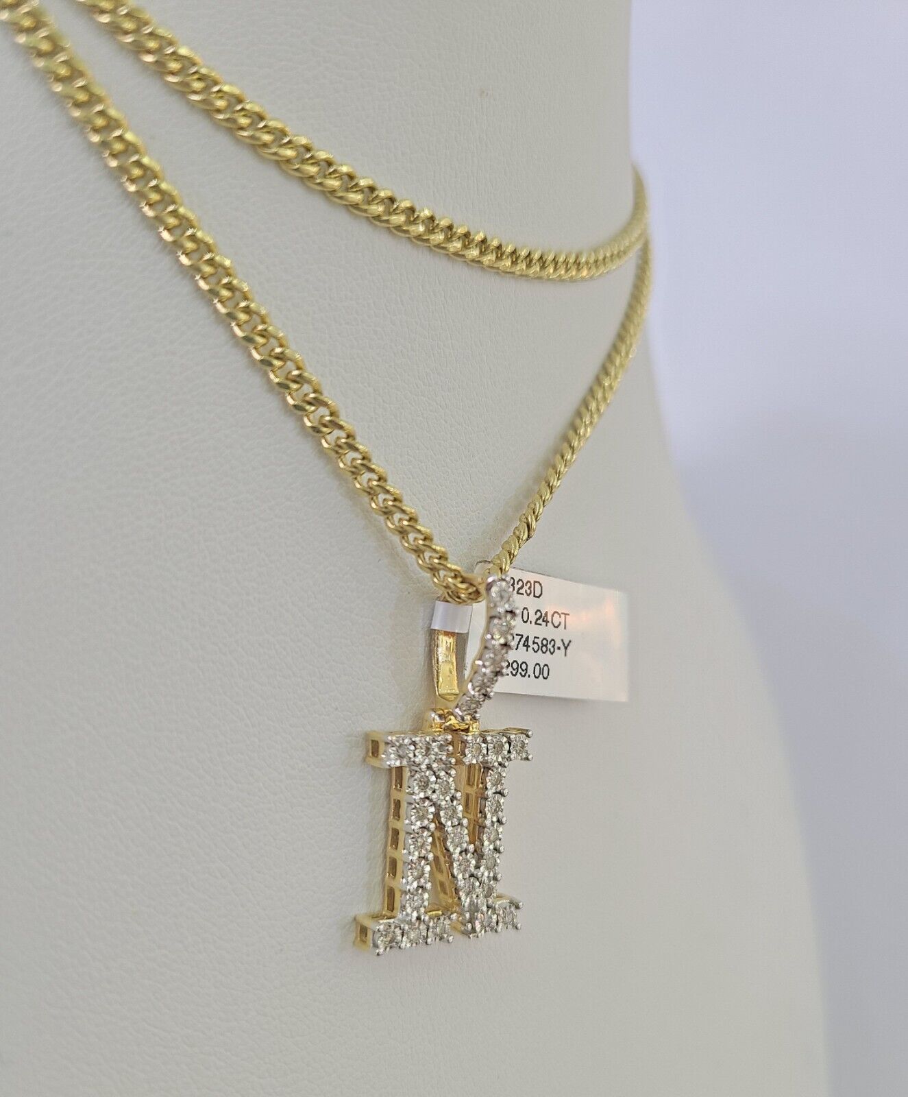 Real 10k Gold Chain N Alphabet Charm Pendant SET 3mm Miami Cuban Link Necklace