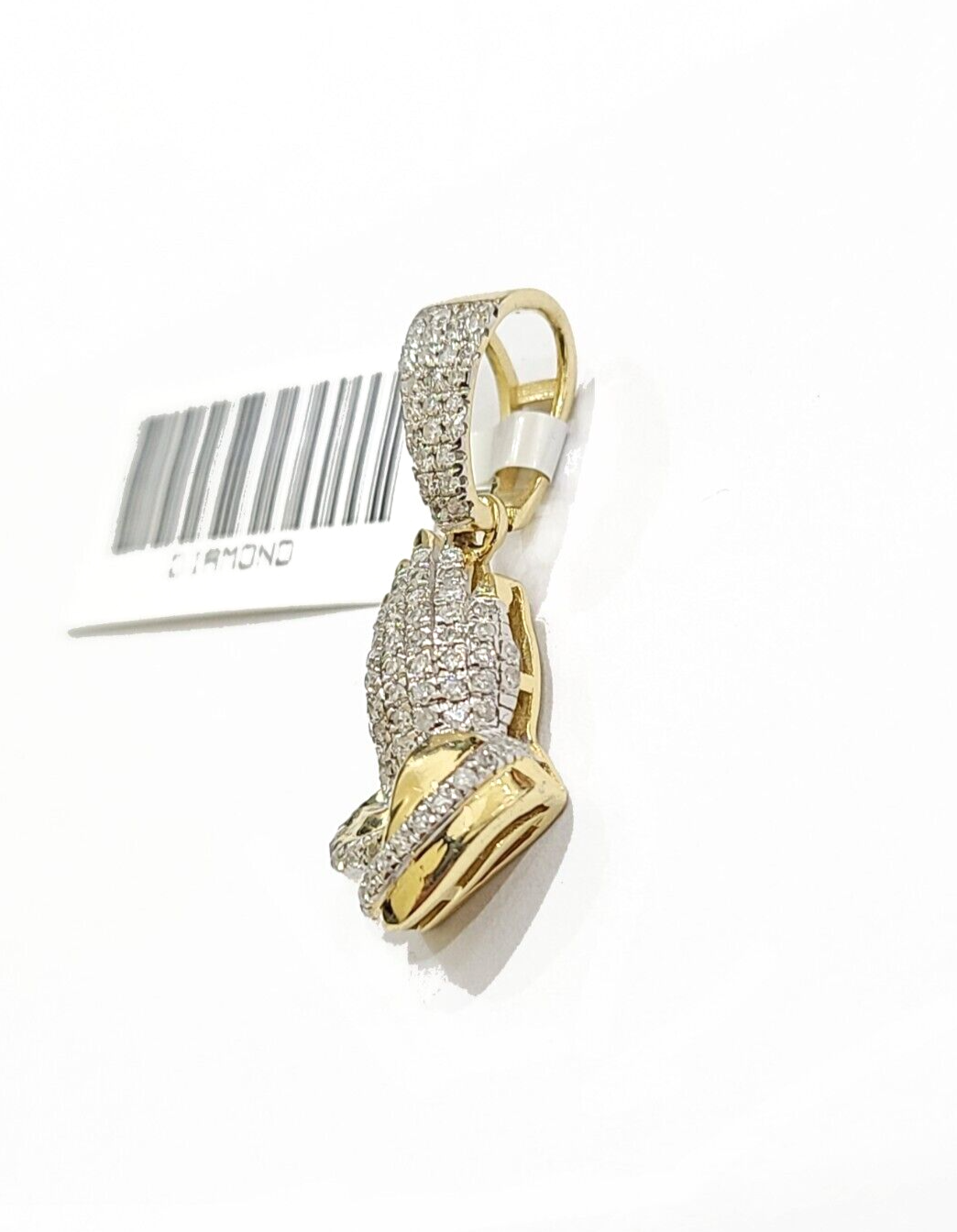 Real 10k Yellow Gold 3mm Rope Chain 20" inch Necklace Praying Hand Charm Pendant