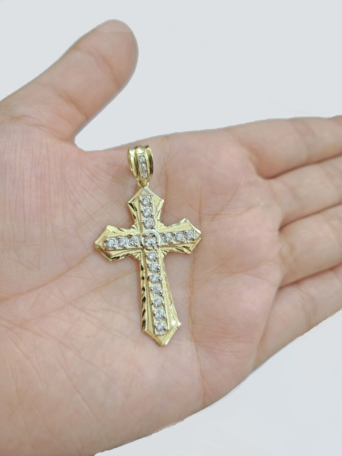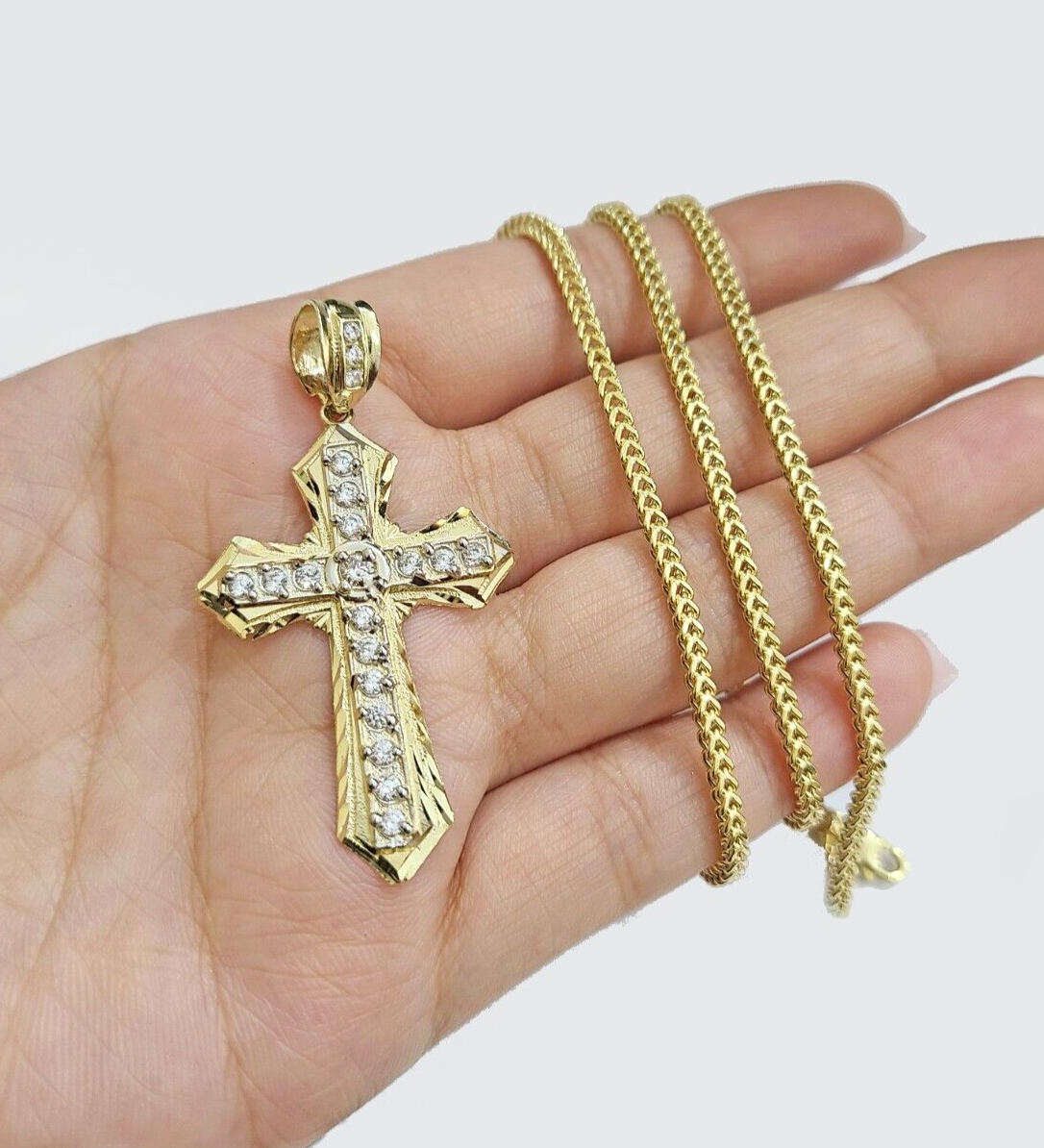 Real 10k Yellow Gold Franco Chain 2.5mm 24" inch Necklace Jesus Cross Charm 10kt