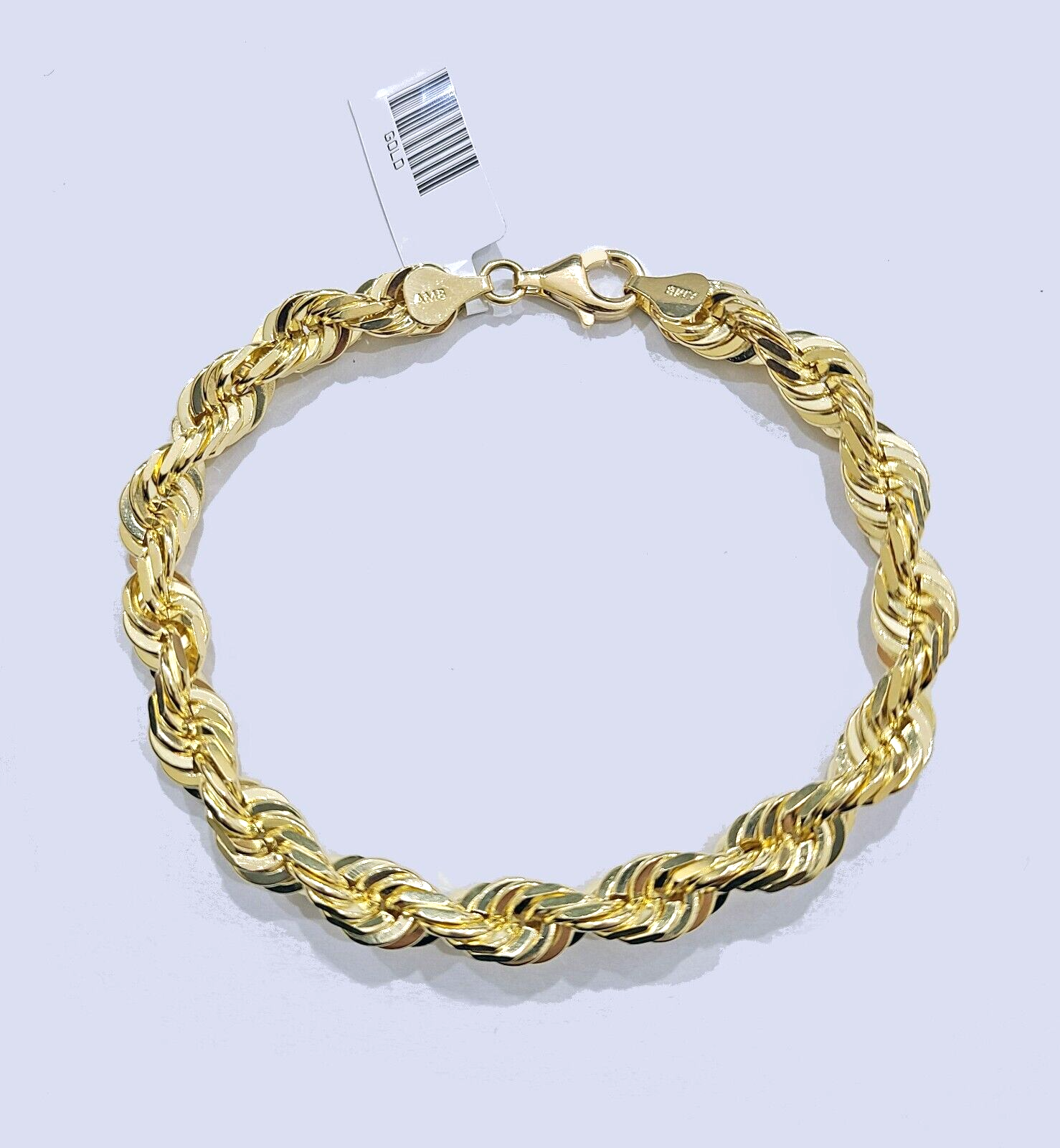 Real 10k Yellow Solid Gold 7mm Rope Bracelet 8'' inch 10kt Unisex