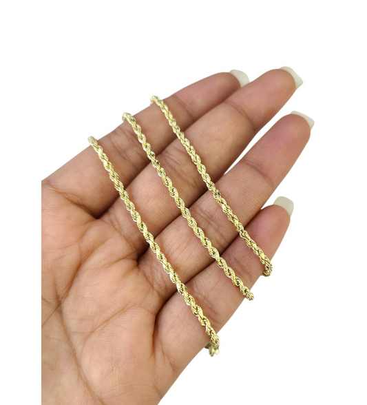 Real 10k Yellow Gold Rope Necklace Chain 2mm 18-30 Inch Diamond Cuts 10kt